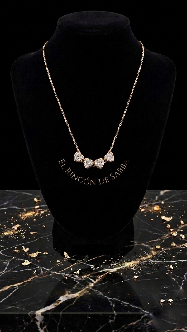 Menos es más. Nuestra gargantilla redefine el concepto de joyería clásica con un toque urbano y minimalista. Diseñada para ser usada sola o en "layering" (capas) con otros collares, su estructura de corazones alineados aporta un brillo sutil pero constante a tu rostro.