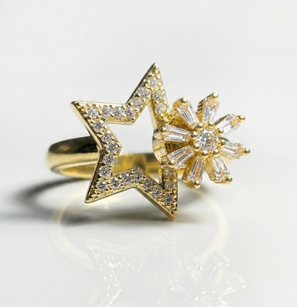 Anillo de estrella y flor dorado en acero quirúrgico ajustable
