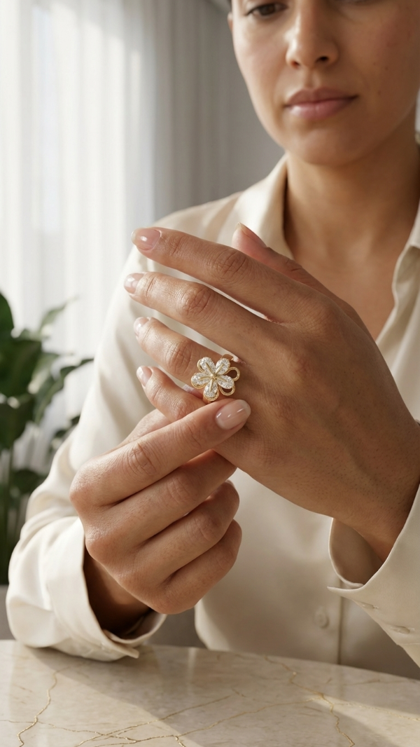 Inspirado en el florecimiento de la primavera, este anillo es más que un accesorio, es un símbolo de renovación, modernidad y elegancia. Su silueta de flor en 3D añade volumen y un brillo inigualable a tus manos, convirtiéndose en el centro de todas las miradas, contando con el movimiento Anti-estrés para que puedas girarlo en los momento que desees o lo necesites.