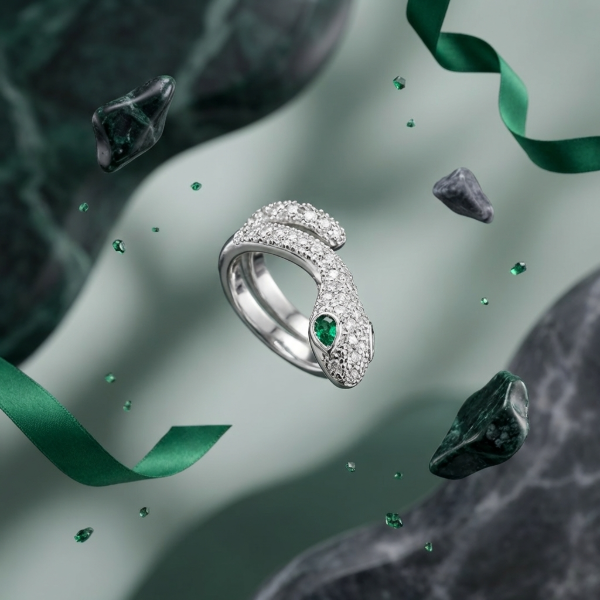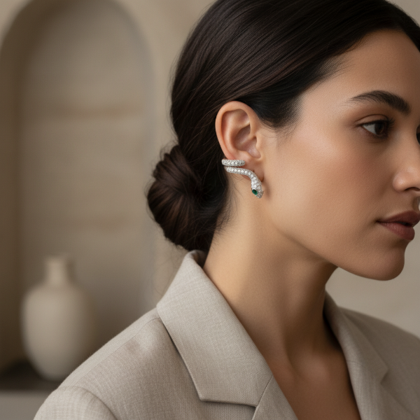Añade un toque de audacia y misterio a tu look sin necesidad de perforaciones extra. Nuestro Ear Cuff de serpiente abraza tu oreja con un diseño ergonómico y lujoso. Con ojos en cristal verde esmeralda y un cuerpo totalmente cubierto de pavé brillante, es la pieza "edgy" que tu colección necesita.
