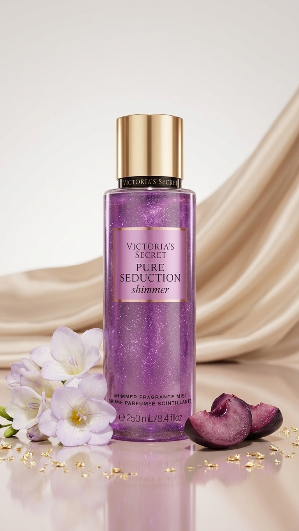 ¡El clásico favorito de todas, ahora con un toque de luz! Pure Seduction Shimmer es la combinación perfecta entre un aroma apasionado y un acabado radiante. Diseñada para la mujer que no teme destacar, esta bruma perfumada dejará tu piel iluminada con destellos plateados y envuelta en un aroma frutal irresistible.