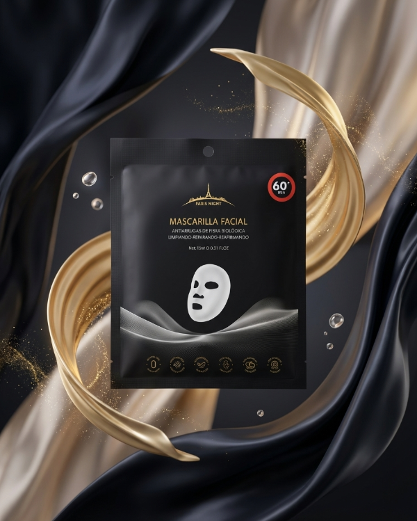Lo Mejor de lo Mejor!! Lleva el cuidado antiedad a un nivel profesional. La mascarilla de París Night no es una mascarilla convencional; es un tratamiento intensivo de Fibra Biológica diseñado para adherirse perfectamente a tu rostro y entregar activos de manera profunda y constante.